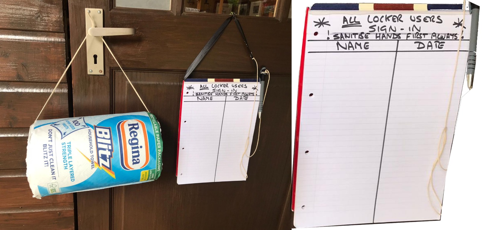 - whoever uses their key to unlock the locker is the ONE PERSON for that visit who is responsible to clean and sanitise everything which that group touches (boats, paddles, locks etc). All members using the locker must first sanitise their hands using the hand sanitiser provided (courtesy of Linlithgow Distillery), then sign in on the sheet hanging in the locker (log your name, date and time of paddling). In the locker you’ll find a supply of anti bacterial spray and a roll of paper towel to wipe down LKR boat decks, cockpits and paddle shafts. These materials are only to be used for club property that is stored in the locker, and should not be used for your own personal boats/equipment. Bin all used paper towels in the green lidded bin outside the locker. User the hand sanitiser hanging inside the locker again at the end of the process. If supplies of hand sanitiser, anti bacterial spray or paper towels run out, please tell a Committee Member so that we can replenish.