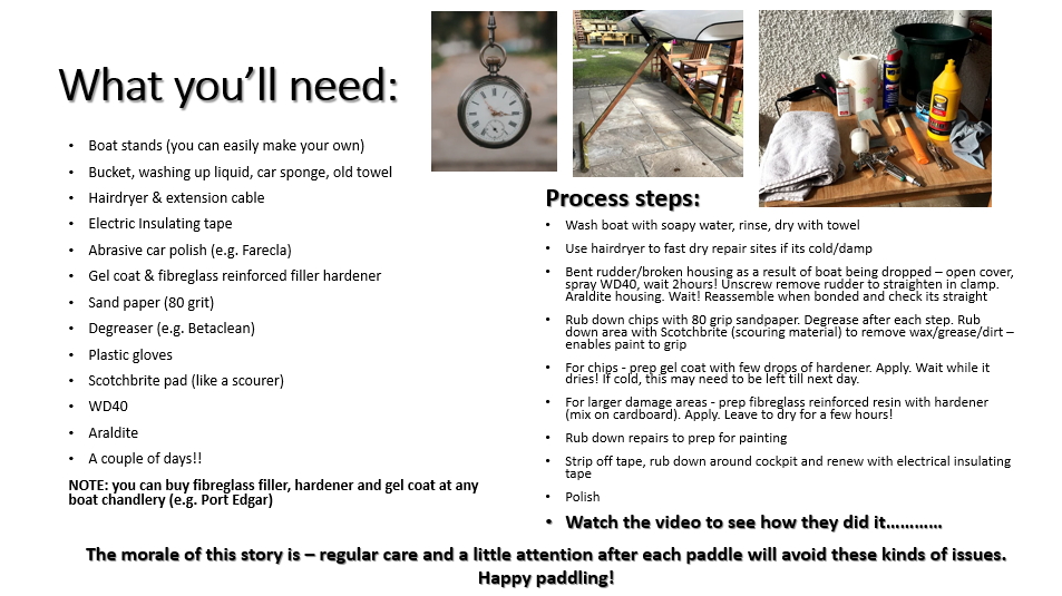 And this next video shows you how to do some basic maintenance and repairs at home….and the slides summarise the process steps and equipment/items you’ll need…